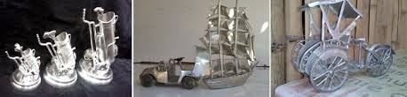 Ada yang berbentuk seperti perahu layar, berbentuk cincin, kalung, gelang, dan hiasan lainya dapat dibuat sesuai dengan permintaan anda. Memang kalau soal harga bervariasi, tergantung tingkat kesulitan dalam membuat dan proses pencetakan - penghalusan, dan sebagainya. Semakin sulit biasanya semakin mahal harga yang diberikan.